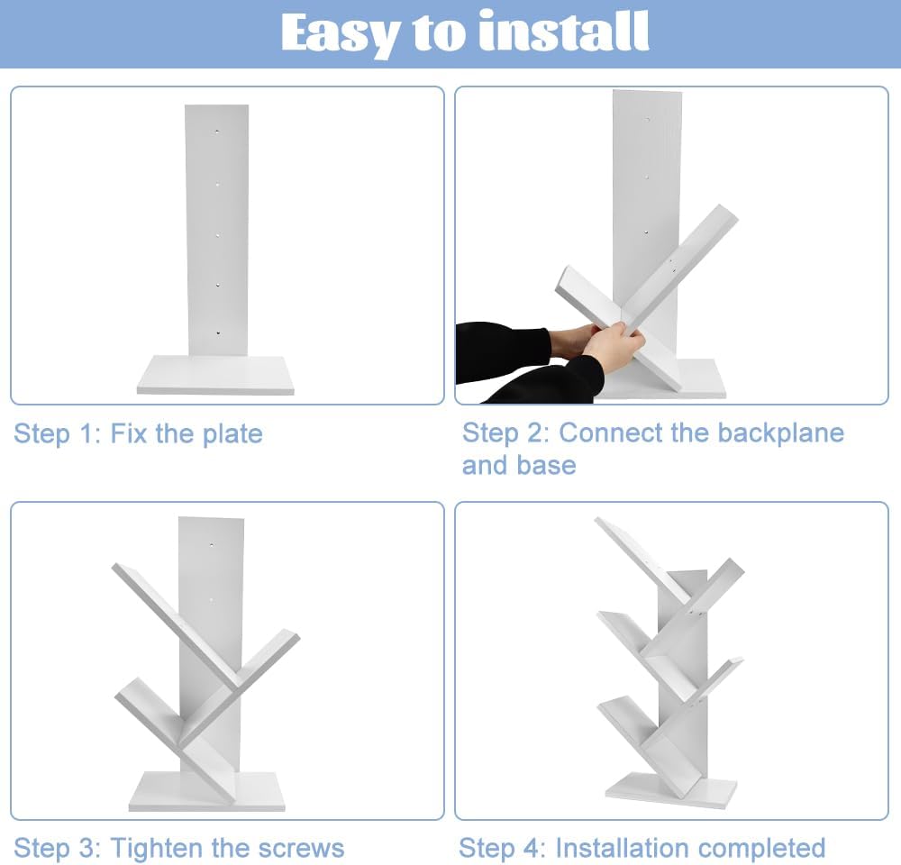 - DURABLE & SPACE-SAVING DESIGN: Crafted from high-density engineered wood, this 5-tier tree bookshelf offers long-lasting support in a compact vertical layout. Perfect for maximizing storage without sacrificing floor space.
